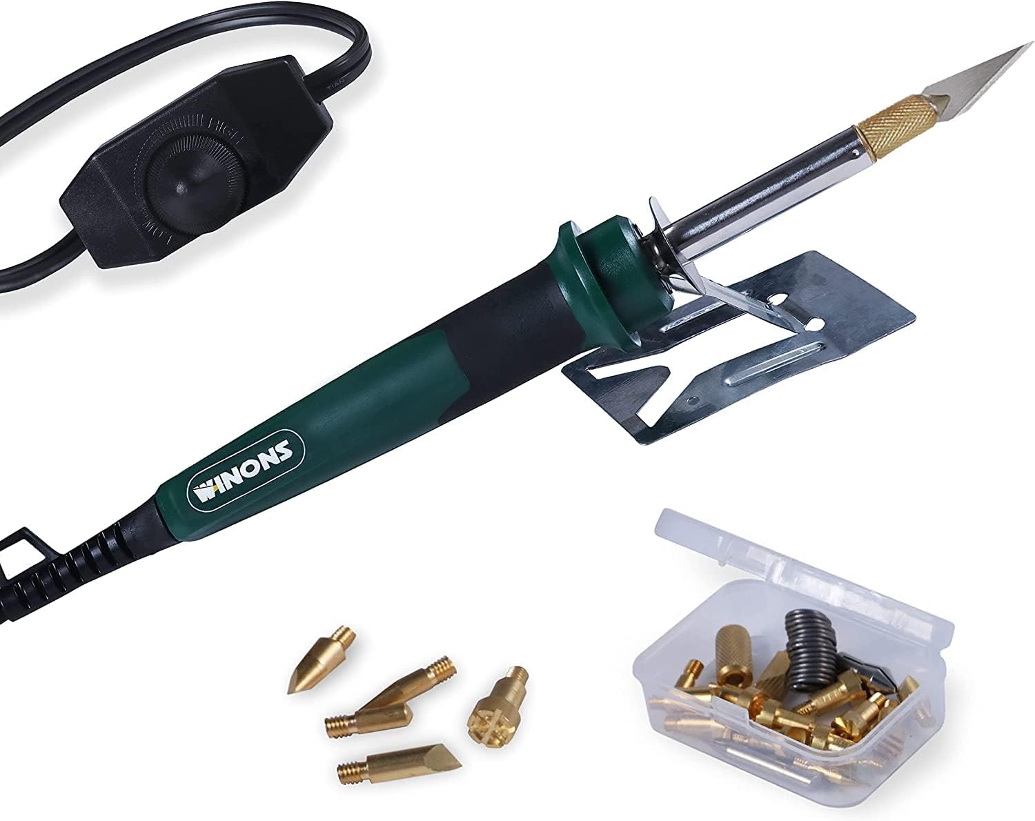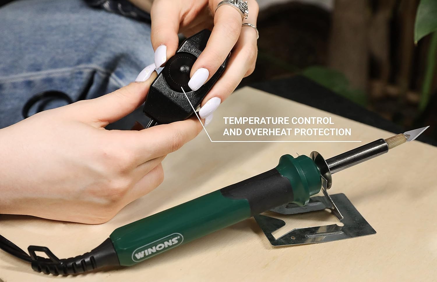 - PACKAGE INCLUDES: Total of 26 pieces that including 30W handle with adjustable temperature control, 2 Cutting head, 19 wood burning nozzles, 1 soldering nozzle, 1 safety stand, 1 soldering wire and 1 user manual