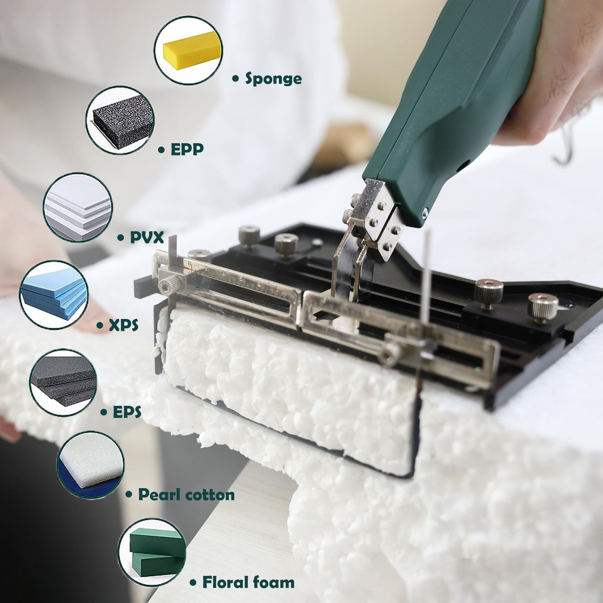 - Versatility: Blades of different lengths and types can be used for different purposes. This device is designed to apply patterns and designs to a variety of foam types: Expanded Polystyrene (EPS) Expanded Polypropylene (EPP) Pearl Wattle Sponge KT Board Foam Glass